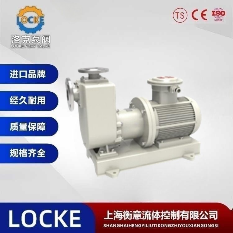 德国《LOCKE》洛克--进口无泄漏磁力自吸泵(简称:磁力自吸泵)是应用现代磁力学原理,利用永磁体的磁力传动实现扭矩的无接触传递,采用外混式轴向回水结构设计,就是电机带动外转子(即外磁钢)总成旋转时,通过磁场的作用磁力线穿过隔离套带动内转子(即内磁钢)总成和叶轮同步旋转,由于介质封闭在静止的隔离套内,从而达到无泄漏抽送介质的目的,泵体由吸液室、储液室、蜗壳、回流孔、气液分离室等组成。泵启动后在离心力的作用下,吸水室中的剩余液体与进液管路中的空气被叶轮搅拌成气水混合物,混合物经蜗壳进入气液分离室,随着流速的减慢,导致气水分离,空气由泵出液口排出,液经回水孔返回泵内,经过多次循环,进液管道中的空气被排净,使泵内形成一定的真空度,达到自吸的作用,彻底解决了机械传动泵的轴封泄漏,而设计的全密封、无泄漏、无污染、强自吸、高效节能的新型工业用泵,性能达到国际标准。