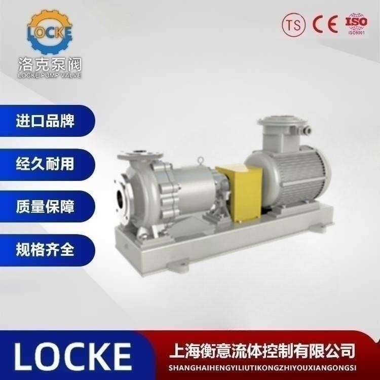 德国《LOCKE》洛克--进口无泄漏磁力泵(简称:磁力泵)是应用现代磁力学原理,利用永磁体的磁力传动实现扭矩的无接触传递的一种新型泵,也就是电机带动外转子(即外磁钢)总成旋转时,通过磁场的作用磁力线穿过隔离套带动内转子(即内磁钢)总成和叶轮同步旋转,由于介质封闭在静止的隔离套内,从而达到无泄漏抽送介质的目的,彻底解决了机械传动泵的轴封泄漏,而设计的全密封、无泄漏、无污染、高效节能的新型工业用泵,性能达到国际标准。