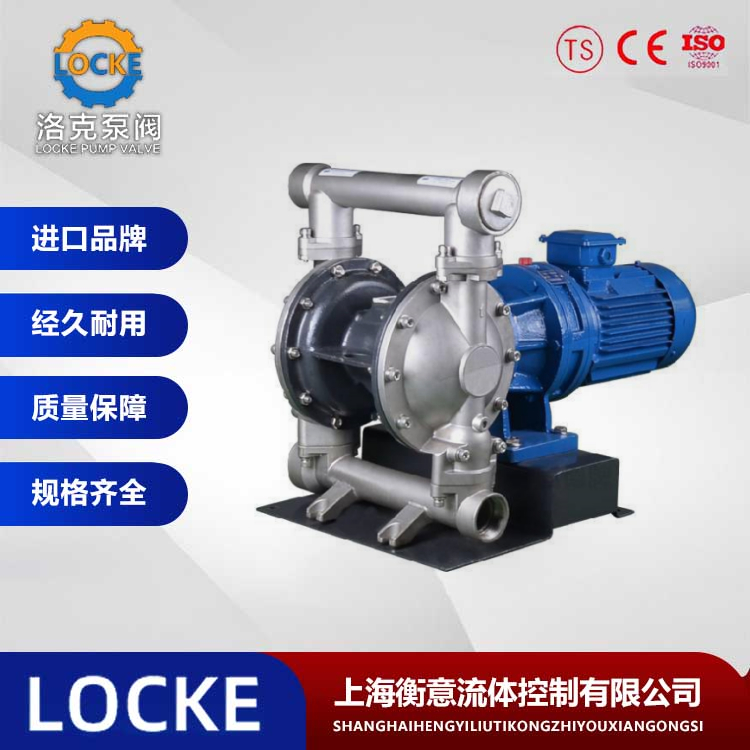 德国《LOCKE》洛克--进口电动隔膜泵采用摆线针轮减速机传动,通过曲轴滑块机构带动双隔膜作往复运动,使工作腔容积发生交替变化从而达到将液体不断地吸入和排出,近年来,由于在隔膜材质上取得了突破性的进展,隔膜泵广泛应用于石化、陶瓷、冶金等行业。隔膜泵特点是不需灌引水,自吸能力强,噪音小。直接将被输送介质和传动机械件分开,所以介质不会向外泄漏。且泵本身无轴液封,使用寿命大大延长。应用领域:喷漆、陶瓷业中隔膜泵已占有的主导地位;环保、废水处理、建筑、排污、精细化工中正在扩大它的市场份额,并具有其他泵不可替代的地位。