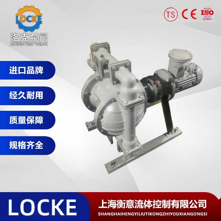 德国《LOCKE》洛克--进口衬氟电动隔膜泵是一种新型的泵类,近年来,由于在隔膜材质是取得了突破性的进展,来应用于石化、陶瓷、冶金等行业,特点是不需灌引水,自吸能力强。直径被输送介质和传动机械件分开,所以介质不上会向外泄漏。且泵本身海无轴业封,使用寿命大大延长。应用领域:喷漆、陶瓷业中隔膜泵已占有的主导地位;环保、废水处理、建筑、排污、精细化工中正在扩大它的市场份额,并具有其他泵不可替代的地位。
