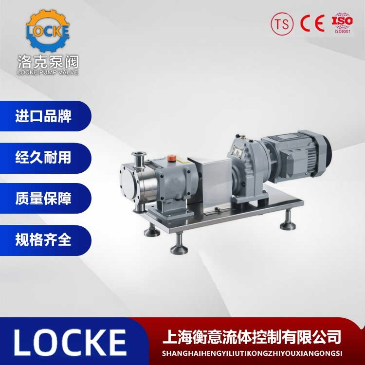 德国《LOCKE》洛克--进口上进下出型转子泵属容积式泵的一种形式,通过转子与泵体间的相对运动来改变工作容积,从而使流体的能量增加。进口上进下出型转子泵又称罗茨泵、胶体泵、高浓浆泵等,它依靠两个同步运动的转子,由一对外置式同步齿轮箱进行传动,转子在传动轴的带动下进行同步反方向旋转,从而构成了较高的真空度和排放压力。两转子将转子室分隔成几个小空间,并按Ⅰ→Ⅱ→Ⅲ→Ⅳ的次序运转。运转到Ⅰ位置时,只有进口处充满介质;运转到Ⅱ位置时,Ⅱ室中封闭了部分介质;到位置Ⅲ时,Ⅲ室中也封闭了介质;到位置Ⅳ时。进口处和出口室相通,介质即被输送至出物料管道。按这样的循环往复,介质即被不断的输送出去。