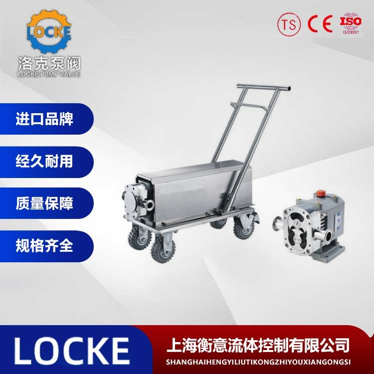 德国《LOCKE》洛克--进口小车移动式转子泵属容积式泵的一种形式,通过转子与泵体间的相对运动来改变工作容积,从而使流体的能量增加。进口小车移动式转子泵又称罗茨泵、胶体泵、高浓浆泵等,它依靠两个同步运动的转子,由一对外置式同步齿轮箱进行传动,转子在传动轴的带动下进行同步反方向旋转,从而构成了较高的真空度和排放压力。两转子将转子室分隔成几个小空间,并按Ⅰ→Ⅱ→Ⅲ→Ⅳ的次序运转。运转到Ⅰ位置时,只有进口处充满介质;运转到Ⅱ位置时,Ⅱ室中封闭了部分介质;到位置Ⅲ时,Ⅲ室中也封闭了介质;到位置Ⅳ时。进口处和出口室相通,介质即被输送至出物料管道。按这样的循环往复,介质即被不断的输送出去。