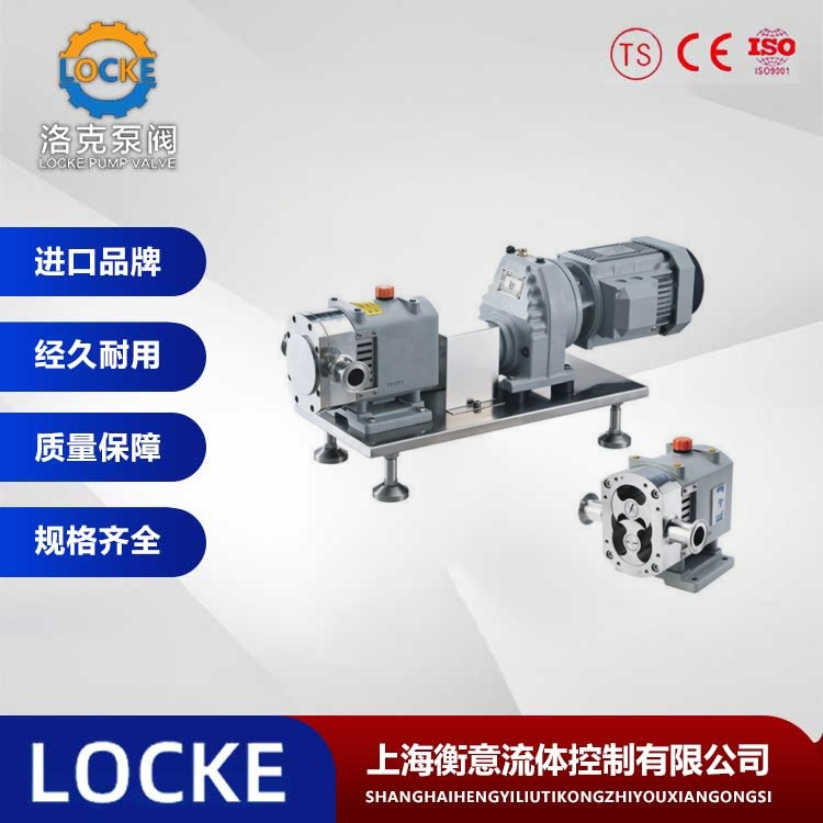 德国《LOCKE》洛克--进口凸轮转子泵又称胶体泵,三叶泵,鞋底泵等。依靠两同步反向转动的转子(齿数为2-4)在旋转过程中于进口处产生吸力(真空度),从而吸入所要输送的物料。两转子将转子室分隔成几个小空间,并按a→b→c→d的次序运转。运转至位置a时,只有I室中充满介质; 到位置b时,B室中封闭了部分介质; 到位置c时,A室中也封闭了介质; 到位置d时,A、B室与Ⅱ室相通,介质即被输送至出料口。如此循环往复,介质(物料)即被源源不断地输送出。进口凸轮转子泵、食品级转子泵、LY系列不锈钢转子泵特别适用于输送中易产生泡沫以及高粘度、浓度及任何含颗粒的介质,经其输送的物料保持原有品质不变,无剪切,不起任何理化反应。如采用外装动、静环式机械密封,可直接水冲洗。进口凸轮转子泵耐高压,不易磨损,无泄漏。体积小,流量大,扬程压力高,适用长距离与高阻力定量输送。进口凸轮转子泵、食品级转子泵、LY系列不锈钢转子泵的转子与传动齿轮分开,泵腔内各零配件之间保持一定的间隙,相互不接触,无磨损,低噪音,可靠性好,使用寿命长,节能降耗。配置变频器后,可以随意调节流量,做一般计量泵使用。可输送汽、液、固等三相混合物料。可以输送的介质的粘度可高达1000000CP和含固量达55%的浆料。结构紧凑,相对螺杆泵占用空间小。