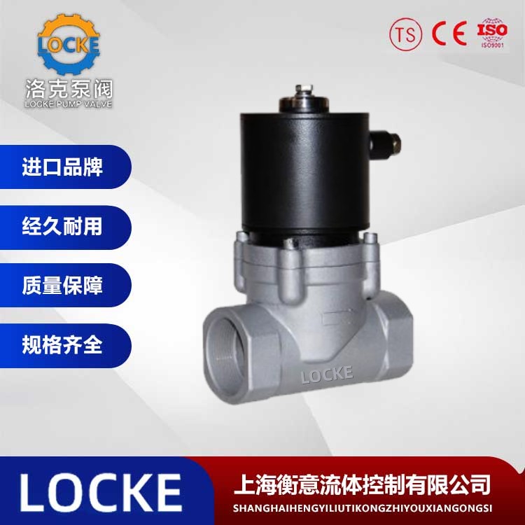 德国《LOCKE》洛克--进口蒸汽内螺纹电磁阀是指用于蒸汽介质的开关截止的电磁阀,采用内螺纹连接方式利于安装,具有耐高温和耐腐蚀的特性。主要用于锅炉蒸汽-饱和蒸汽 、热电厂出来的蒸汽-过热蒸汽两种。蒸汽电磁阀广泛地应用纺织、印刷、化工、塑料、橡胶、制药、食品、建材、机械、电器、表面处理和科研部门以及浴室、食堂、空调等自控系统。