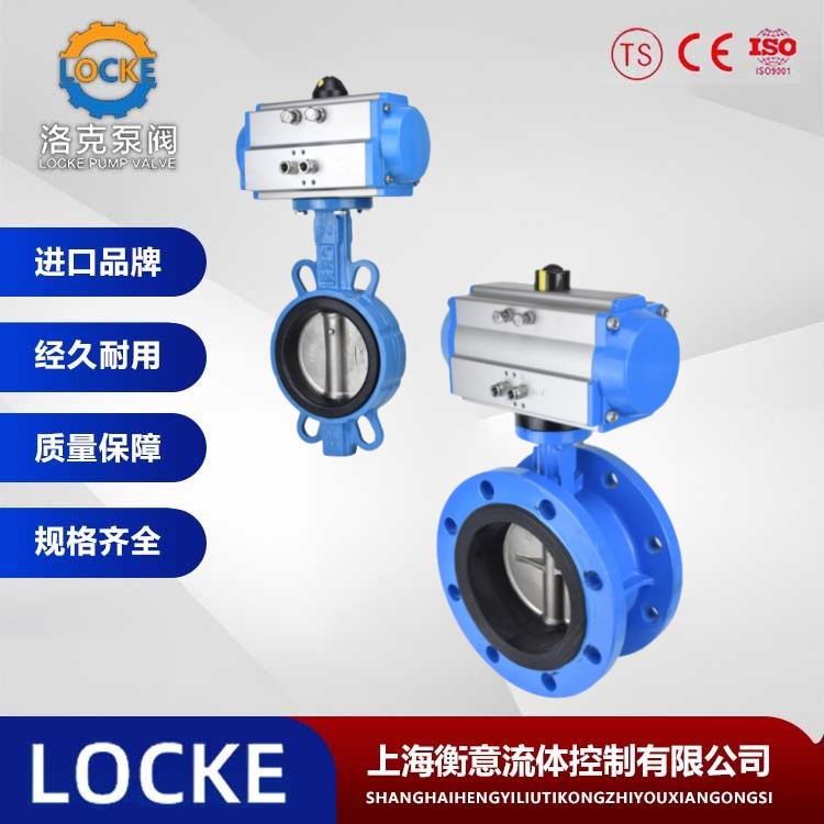 德国《LOCKE》洛克--进口气动蝶阀气动执行器拔叉式传动,结构合理,输出扭矩大,有双作用式和单作用式蝶阀主要结构特征为对夹式和法兰三偏心式结构,阀体周边带凸耳设计成带螺孔单法兰结构。三偏心结构,密封性能可靠,确保开启时蝶阀不接触密封座,消除了密封座不均匀负载,延长了使用寿命,确保可靠的密封性能,具有耐高温、耐磨损、耐腐蚀等优点。蝶阀广泛应用于石油、化工即工业环境水处理、高层建筑,给排水等管道上。