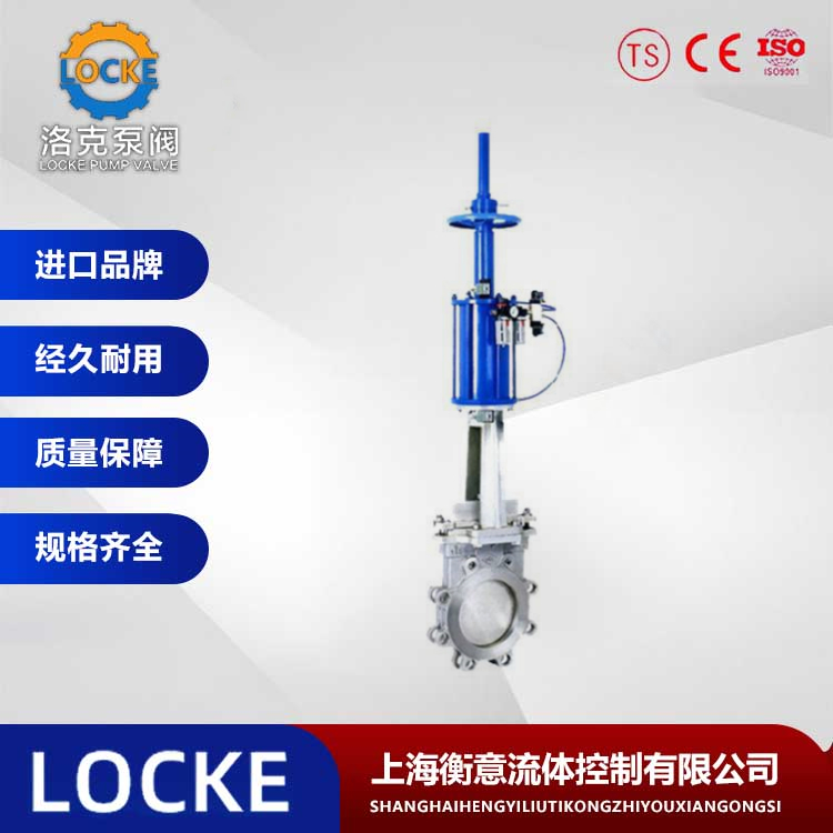 | 德国《LOCKE》洛克--进口气动带手动刀形闸阀是具有气动执行机构(双层气缸,并带有缓冲机构)和手动及其保护机构(手动和可自锁的气动手动转换装置)的低支架明杆闸阀。该阀由于采用双层气缸结构,其与单气缸式气动闸阀相比,提升力增大了一倍。这就从根本上解决了单气缸气动闸阀的某些阀板在阀体内楔死而打不开的弊病。而且,由于该阀具备缓冲机构,能有效地减轻了关闭阀门时。由于活塞下行冲击而造成的阀板密封面和阀体密封面的磨损,同时,也能避免闸板卡死的现象。 | |||||