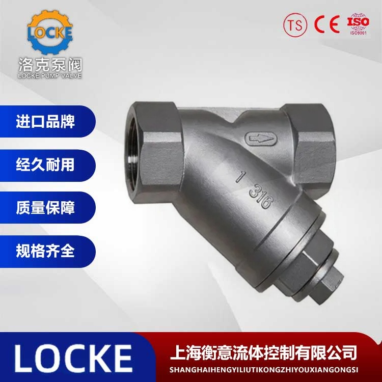 德国《LOCKE》洛克--进口不锈钢丝口过滤器(thread filter)主要应用于口径较小的管道设备,连接拆卸方便,排污性能可靠,经济适用。是输送介质的管道系统不可缺少的一种装置,通常安装在减压阀、泄压阀、定水位阀等水力控制阀或其它设备的进口端,用来清除介质中颗粒性杂质,免受因管道内杂质、铁锈、焊屑等带来的堵塞和损坏,从而避免了维修费用和生产损失,保护阀门等设备的正常使用。