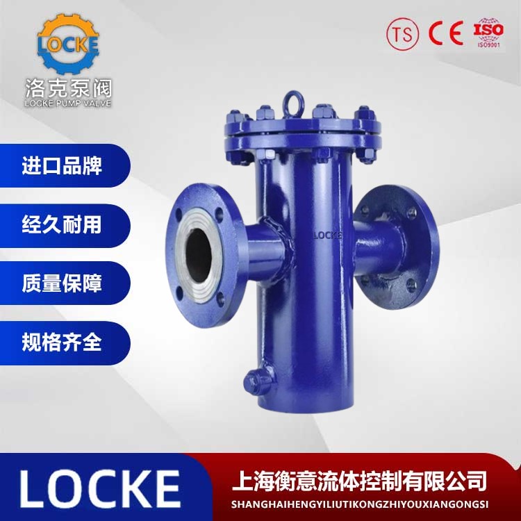 德国《LOCKE》洛克--进口铸钢篮式过滤器(basket type filter)主要由接管、主管、滤篮、法兰盖及紧固件等组成,当流体通过主管进入过滤篮后,固体杂质颗粒被阻挡在过滤篮内,而洁净的流体通过滤篮后由过滤器出口排出。当需要清洗时,旋开主管底部螺塞,排净流体,拆卸法兰盖,取出滤篮,清洗后重新装入即可,因此,使用维护较为方便。