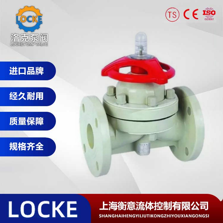 德国《LOCKE》洛克生产的进口塑料隔膜阀阀体采用耐酸碱腐蚀耐高温的塑料铸造而成,隔膜采用具有不粘性的塑料或者橡胶制成使整体流道平滑,阻力小,流量大。隔膜阀体型阀杆不与介质接触无外漏。广泛适用于工业自动化系统中的强酸、强碱、强腐蚀、高粘度、含颖粒、带纤维以及有毒和不充许污染的介质的流量调节。