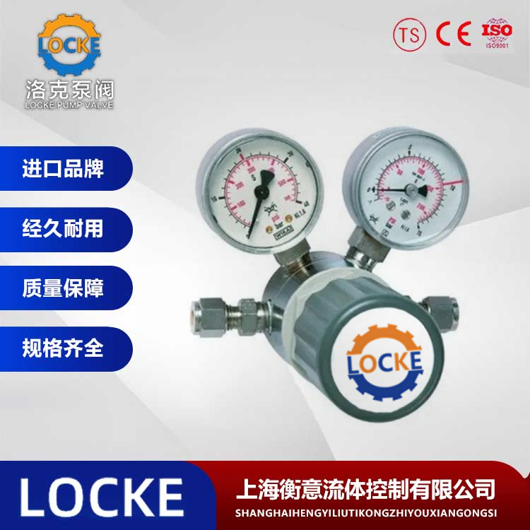 德国《LOCKE》洛克--进口液体气体减压阀又称进口不锈钢减压阀采用单级式膜片减压结构,结构简单、重量轻。阀体设计较其紧凑,不锈钢膜片压力传输,输出压力稳定,适用于纯净气体、标准气体、腐蚀性气体,液体等。