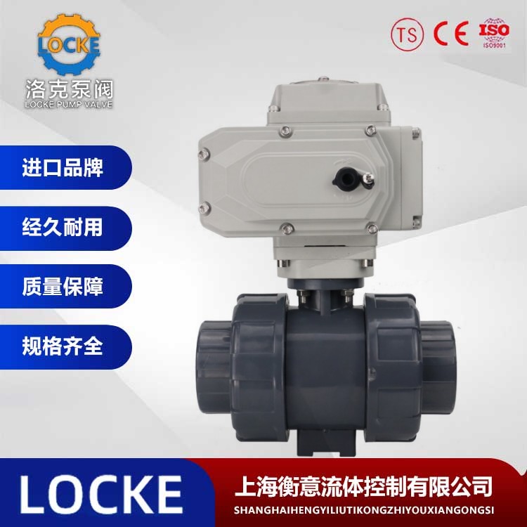 德国《LOCKE》洛克--进口电动PVC球阀由德国LOCKE洛克的塑料球阀和电动执行器组成,PVC电动球阀采用双由令、法兰连接,不需使用特殊工具即可快速装配。具有结构紧凑、耐磨损、容易拆卸、方便检修、维护简单易行等优点。阀体材质卫生无毒、耐腐蚀性强、重量轻、适用范围广。