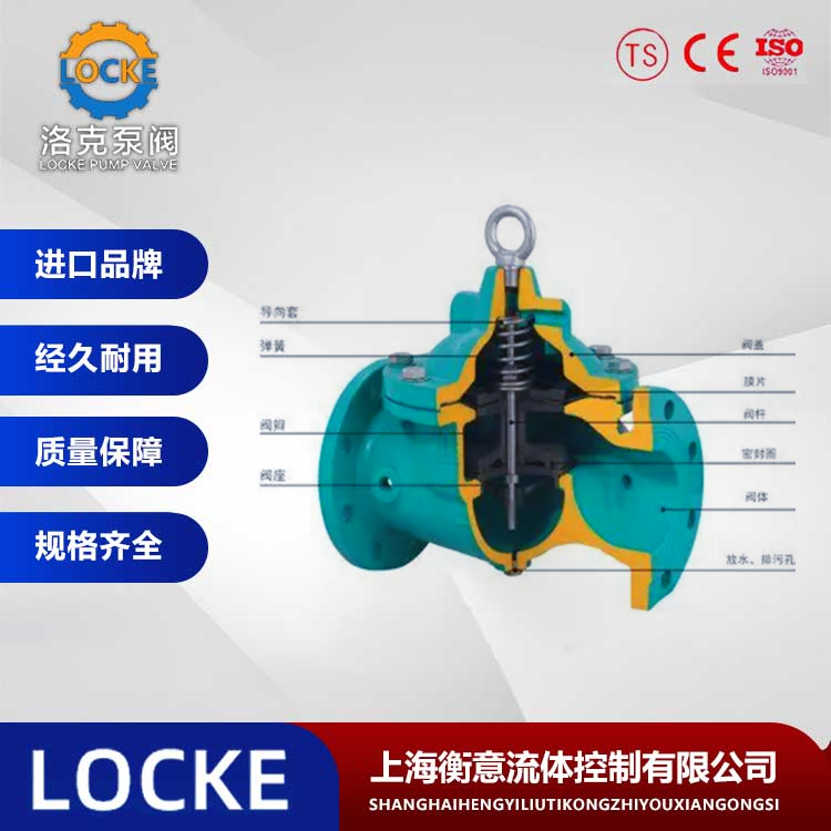 德国《LOCKE》洛克--进口膜片式水力控制阀是以管道介质压力为动力,进行启闭、调节的阀门。它由一个主阀和附设的导管、针阀、球阀和压力表等组成,根据使用的目的、功能场所的不同,可演变成遥控浮球阀、减压阀、缓闭止回阀、流量控制器、泄压阀、水泵控制阀、水力电动控制阀、紧急关闭阀。