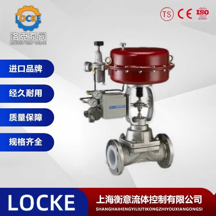 德国LOCKE洛克--进口气动薄膜隔膜调节阀由LOCKE多弹簧气动薄膜执行机构和隔膜阀组成。气动薄膜隔膜调节阀隔膜阀体流通平滑、节流元件为弹性隔膜阀,阀盖上无填料函。因而阀流通能力比一般调节阀大且无泄漏,在许用压差范围内可作切断阀用。气开、气关作用由正反执行机构实现。气动薄膜隔膜调节阀适用于高粘性流体、悬浮状颗粒、纤维介质和有毒介质、腐蚀性介质的调节场合。