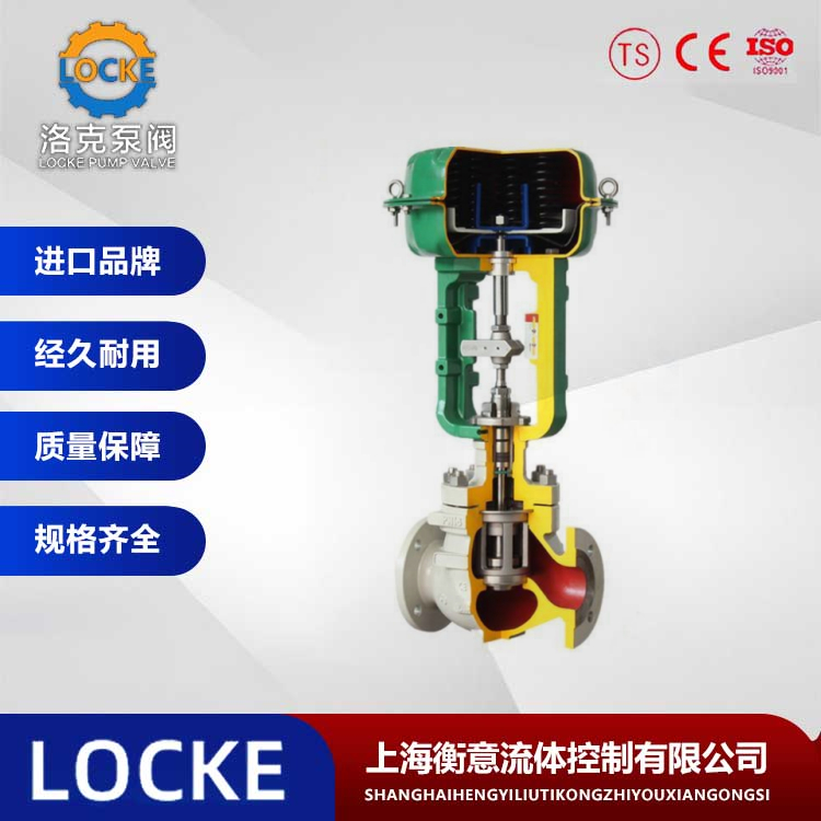 德国《LOCKE》洛克--进口不平衡笼式调节阀是一种单座套筒式调节阀,阀芯没有压力平衡孔,阀体结构紧凑,流体通道呈S流线型,设有一个改善套筒周围流体平稳流动的导流翼,压降损失小,流量大、可调范围广,耐空化腐蚀。流量特性曲线精度高。低噪音笼式调节阀有优良的关闭密封性,阀座泄漏量相当于单座阀水平,调节阀配用LOCKE系列多弹簧式薄膜执行机构,结构紧凑,输出力大。可广泛适用于要求噪音低,空化腐蚀小,密封性要求较严的场合。