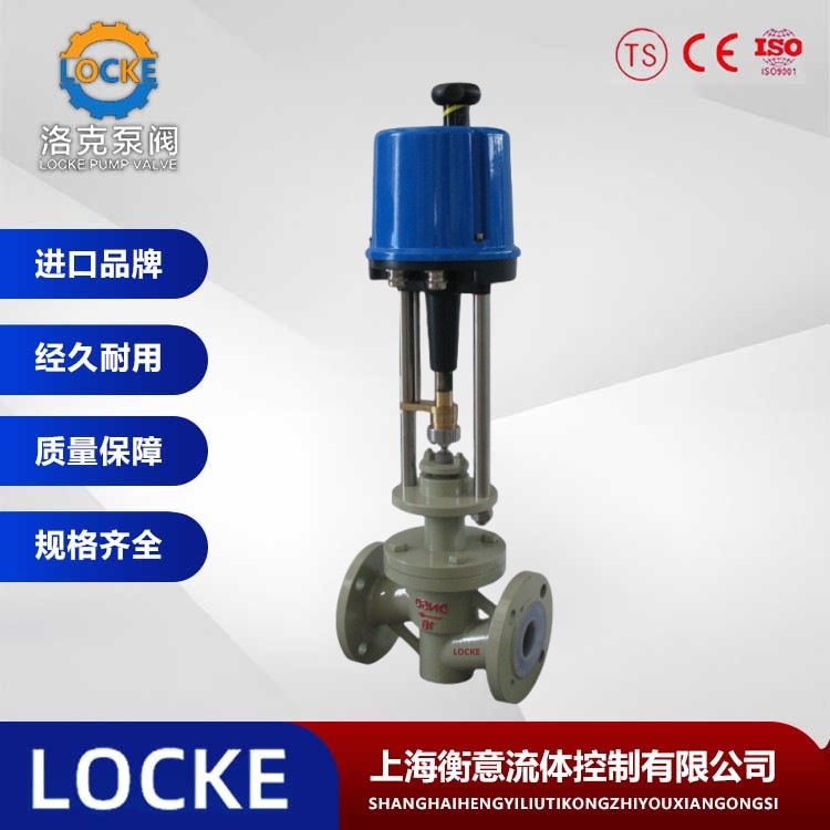 德国《LOCKE》洛克--进口防爆电动衬氟调节阀,由低流阻直通单座阀,单座适用于对泄露量求严格、阀前后压差低及有一定粘度和含纤维介质的场合;双座阀不平衡力小、允许压差大、流通能力大等特点,适用于泄露量要求不严格的场合;套筒阀具有稳定性好,不易产生震动,噪音低,对温度敏感小,适用于压差较大及泄露量要求不严格场合由低流阻直通套筒阀,由气动薄膜执行机构和调节阀体组成。配用HSL型直行程或LOCKE角行程电动执行机构组成。电动执行机构内有伺服放大器,无需另配用伺服放大器,有输入控制信号(4-20mADC或1-5VDC)及单相电源即可控制运转,实现对压力、流量、温度、液位等参数的调节。具有体积小、重量轻、连线简单、流量大、调节精度高等特点,广泛应用于电力、石油、化工、冶金、环保、轻工、教学和科研设备等行业的工业过程自动控制系统中。