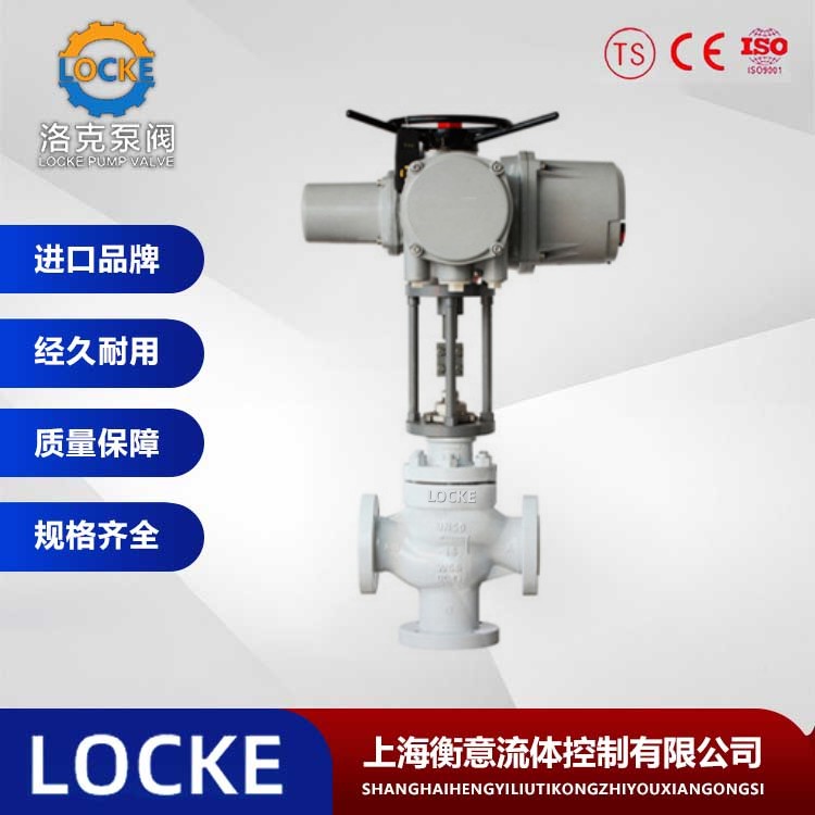 电动三通合流(分流)调节阀有合流和分流二种型式,由LOCKE电动执行机构和三通合流或三通分流调节组成,以电源为动力,接受统一的标准信号0~10mA DC或4-20mA Dc驱使阀门开度与此操作信号相对应。合流阀的作用是将一种流体分成两路流体。