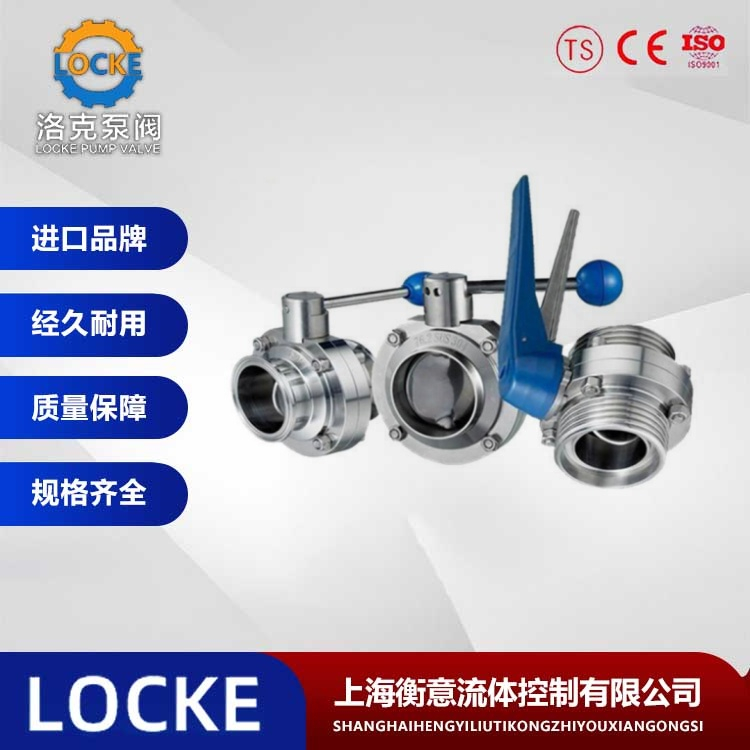 德国《LOCKE》洛克--进口卫生级蝶阀是蝶阀的一种,是食品机械配件,用于小口径的产品。是用随阀柑转动的圆形蝶板做启闭性,以实现启用动作的,主要做截断阀使用,亦可设计成具有调节或段阀兼调节的功能,目前蝶阀在低压大中口径管道上的使用越来越多。